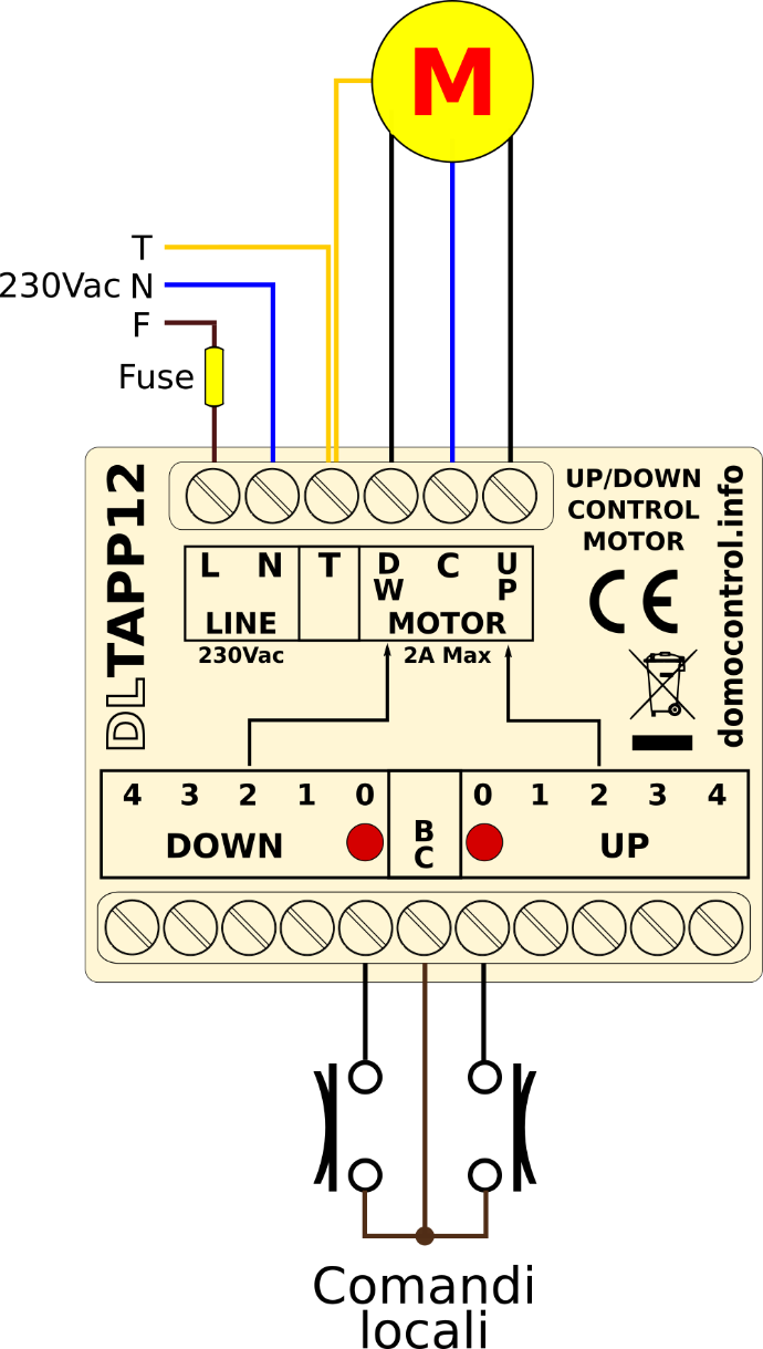- Comando su/giù, tramite pulsanti a tensione di rete;