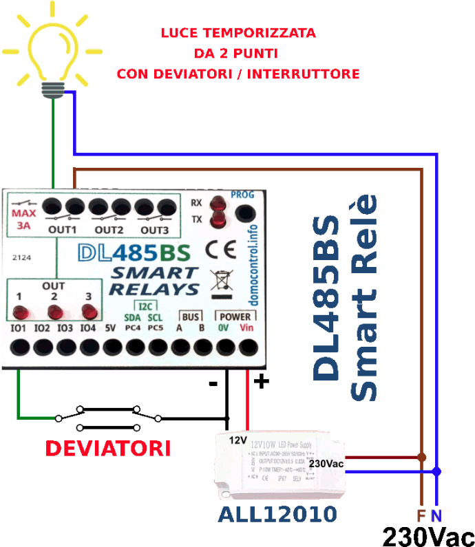 LUCE TEMPORIZZATA USANDO DEVIATORI E INTERRUTTORI INVECE DEI PULSANTI