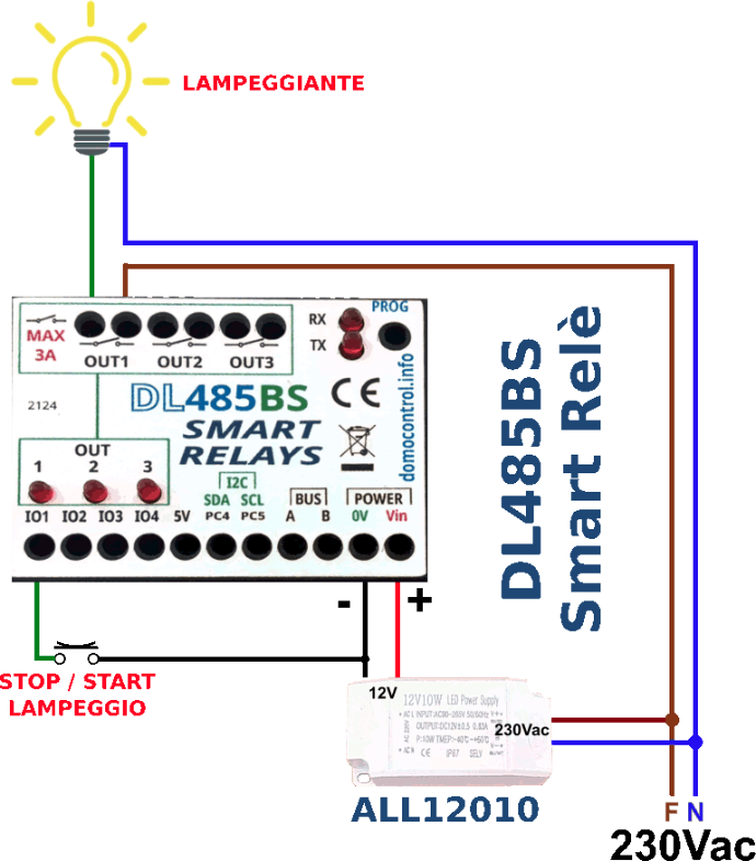con funzionamento autonomo e/o integrabile in rete 485 con Domoticz.